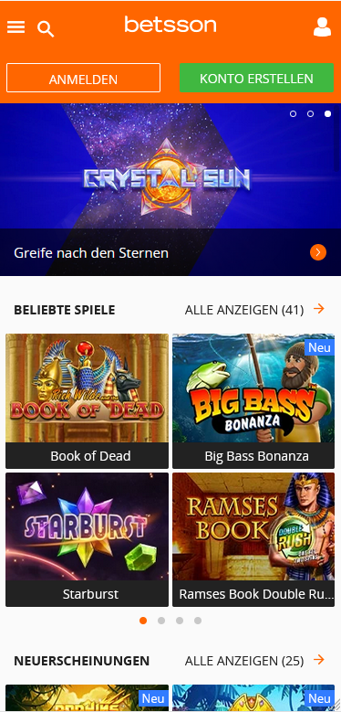 Anwendungen verbrauchen wirtschaftlich Verkehr. Alle Betsson-Events stehen Benutzern zur Verfügung. Boni werden unter den gleichen Bedingungen gewährt. Für den Komfort der Spieler bietet die mobile Version Unterstützung für eine große Anzahl von Sprachen.Herunterladbare Anwendungen sind mit einer Vielzahl von Versionen von Android und iOS kompatibel. Wenn die Hardwareleistung des Geräts zum Surfen im Internet ausreicht, gibt es keine Probleme beim Starten einer mobilen Version des Casinos. Dies ist eine bequeme Alternative, mit der Glücksspielbegeisterte an jedem geeigneten Ort Slots eröffnen können.