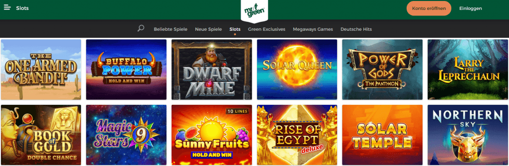 Das Casino verfügt über Hunderte von Video-Slots, darunter auch exklusive, die von bekannten Anbietern im Auftrag von Mr. Green Viele Fans „einarmiger Banditen“ spielen auch Jackpots, die im entsprechenden Abschnitt platziert sind. Die Sammlung von Brettspielen besteht aus verschiedenen Arten: