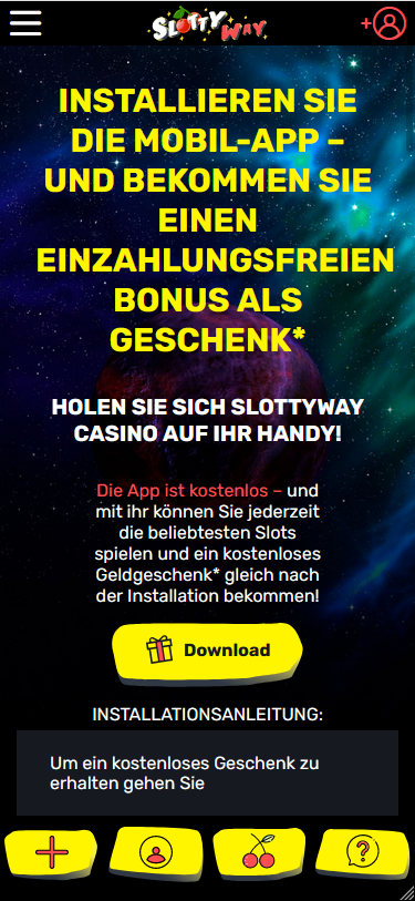 Wenn Sie die SlottyWay-Anwendung auf Ihr Telefon oder Tablet herunterladen möchten, befolgen Sie die Anweisungen im gleichnamigen Abschnitt. Sie müssen nur dem Link folgen oder den QR-Code scannen. Die App funktioniert jedoch ausschließlich auf Android-Smartphones.